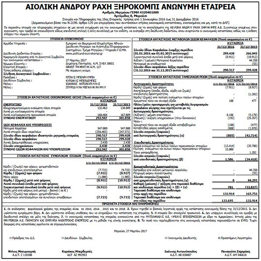 ΟΙΚΟΝΟΜΙΚΑ ΑΠΟΤΕΛΕΣΜΑΤΑ 2016