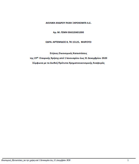 Για να κατεβάσετε τις Χρηματοοικονομικές Καταστάσεις του 2020 πατήστε εδώ