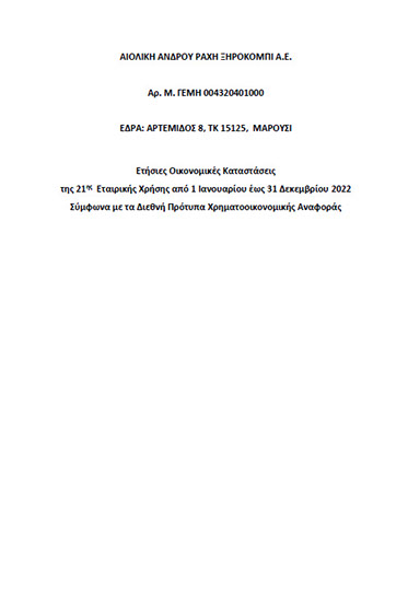 Για να κατεβάσετε τις Χρηματοοικονομικές Καταστάσεις του 2022 πατήστε εδώ